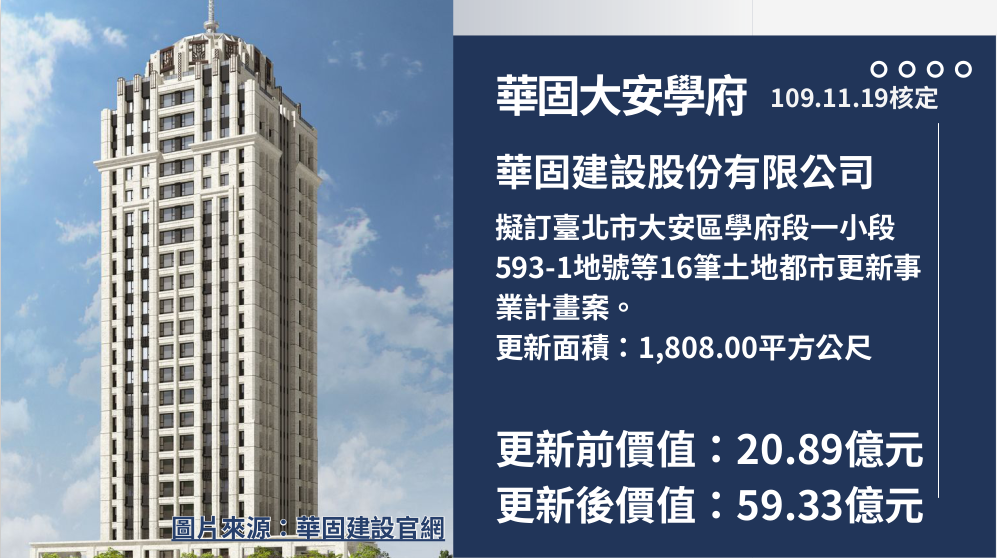 皇普建設(台北住宅大樓)、台灣新光國際(宜蘭天外天喜來登酒店)、